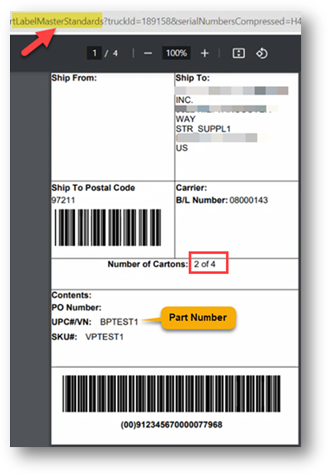 - Part Number [BPTEST2] has Qty/Master =300 and Qty/Pack = 100.